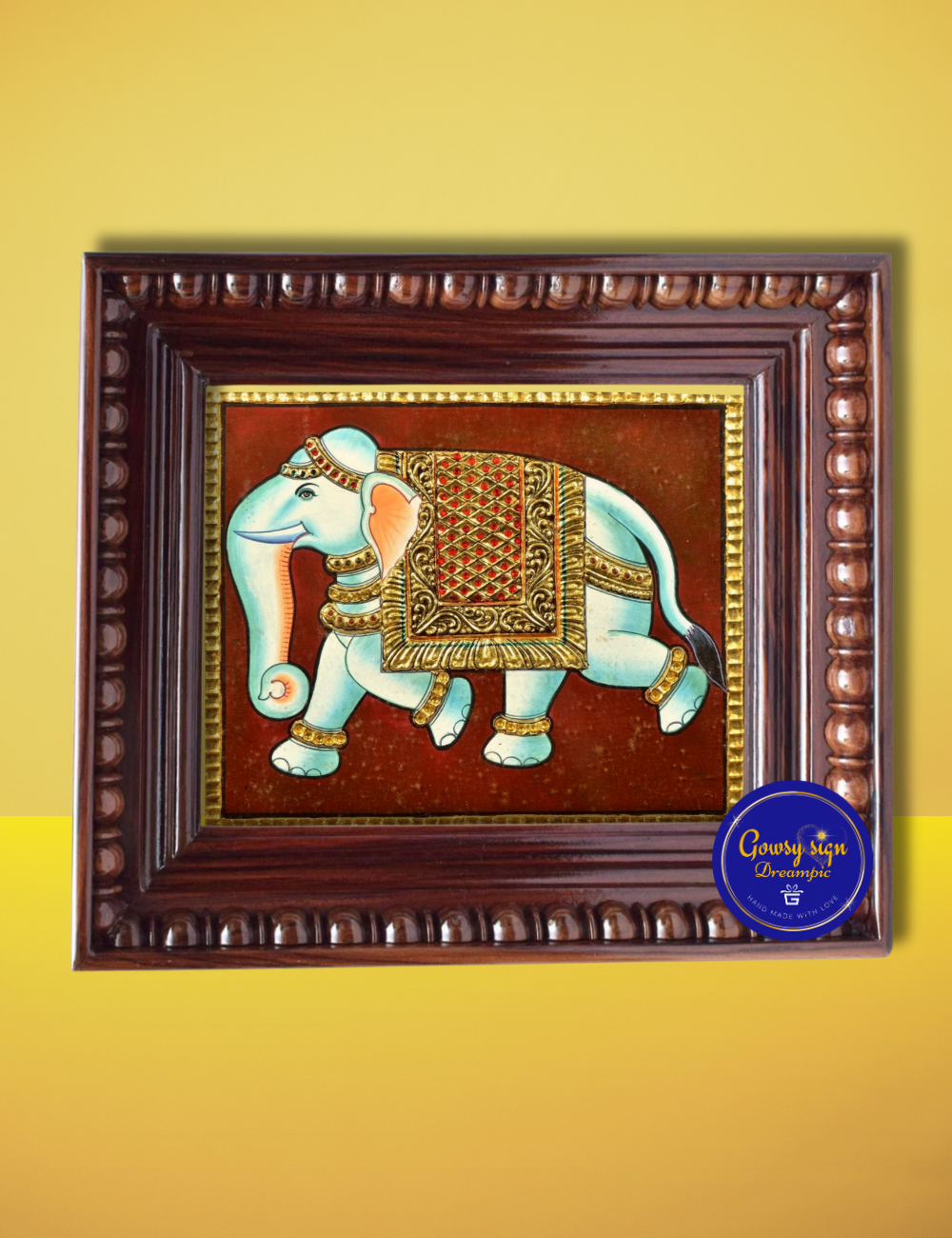 White Pattathu Yanai – Royal White Elephant Tanjore Painting with 24k Gold Foil | Symbol of Prosperity & Power