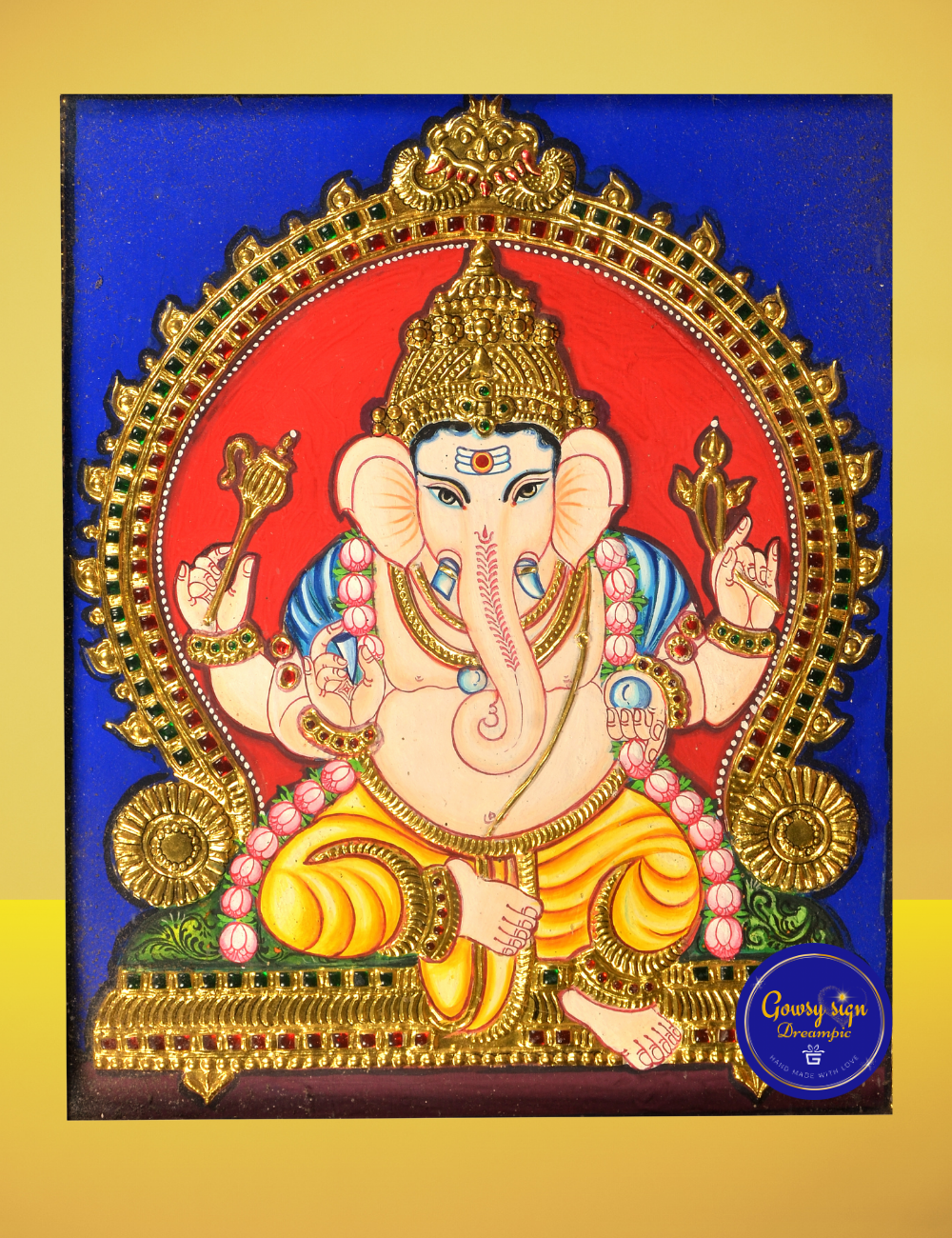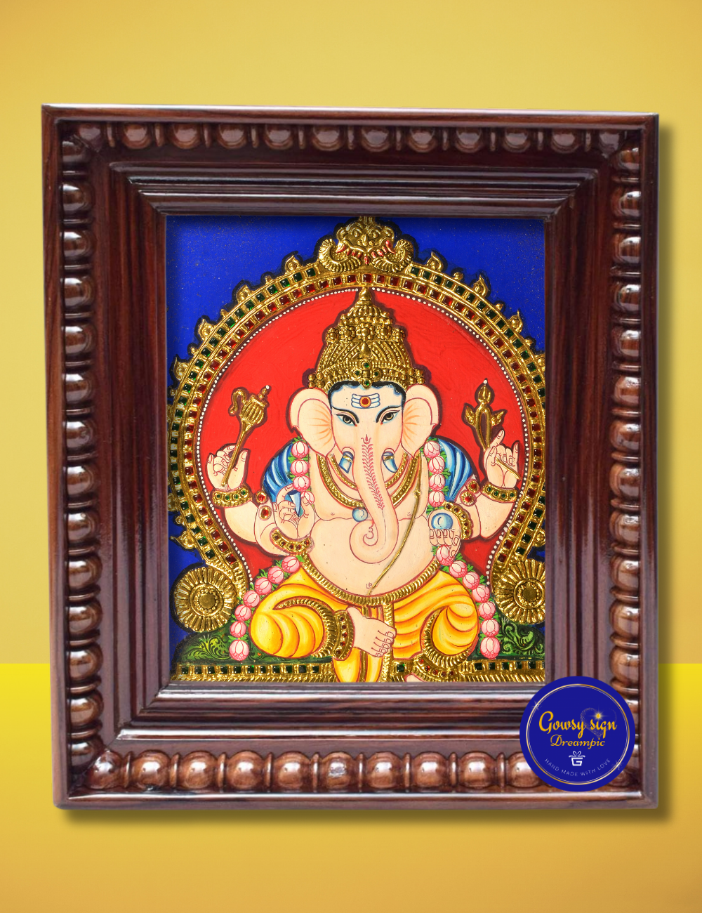 Lord Vinayakar – Tanjore Painting of Ganesha with 24k Gold Foil | Remover of Obstacles & Bringer of Prosperity