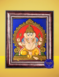 Invoke divine blessings and auspiciousness with this traditional Tanjore painting of Lord Vinayakar (Ganesha) – the beloved Remover of Obstacles and God of Beginnings. Seated gracefully with a calm expression and adorned with intricate ornaments, this artwork captures the spiritual energy and cultural richness of South Indian temple art.