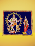 Intricately crafted using traditional Tanjore art techniques, the painting is embellished with authentic 24k gold foil, natural pigments, and precise detailing. Lord Natarajar’s dynamic pose and Sivakami’s serene presence reflect both power and devotion in perfect harmony.