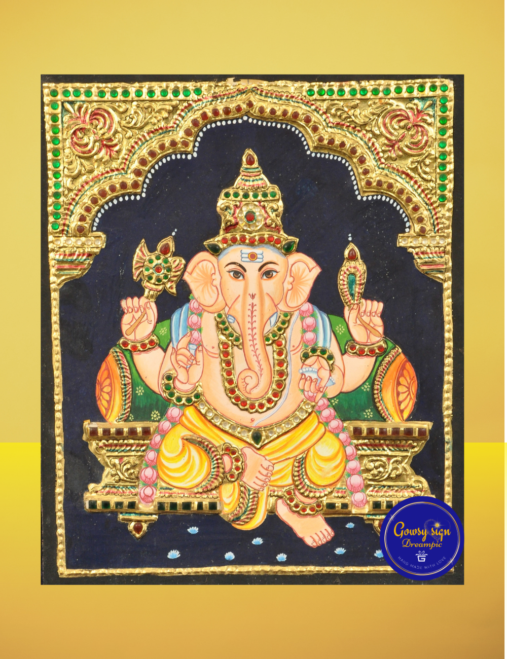 Divine Lord Ganesha Tanjore Painting – Traditional 24K Gold Foil Artwork