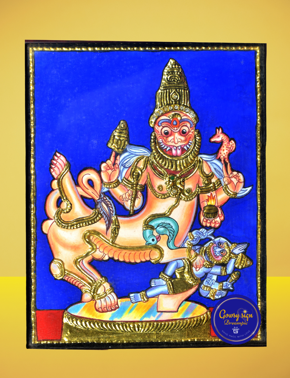 Lord Sarabeshwarar – Tanjore Painting with 24k Gold Foil | Fierce Protector Form of Shiva