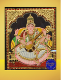 Invoke the blessings of Goddess Saraswathi, the embodiment of wisdom, arts, music, and education, through this elegant Tanjore painting. Seated gracefully on a white lotus and holding the veena, book, and rosary, this sacred form of the Goddess of Knowledge inspires creativity and clarity of thought.