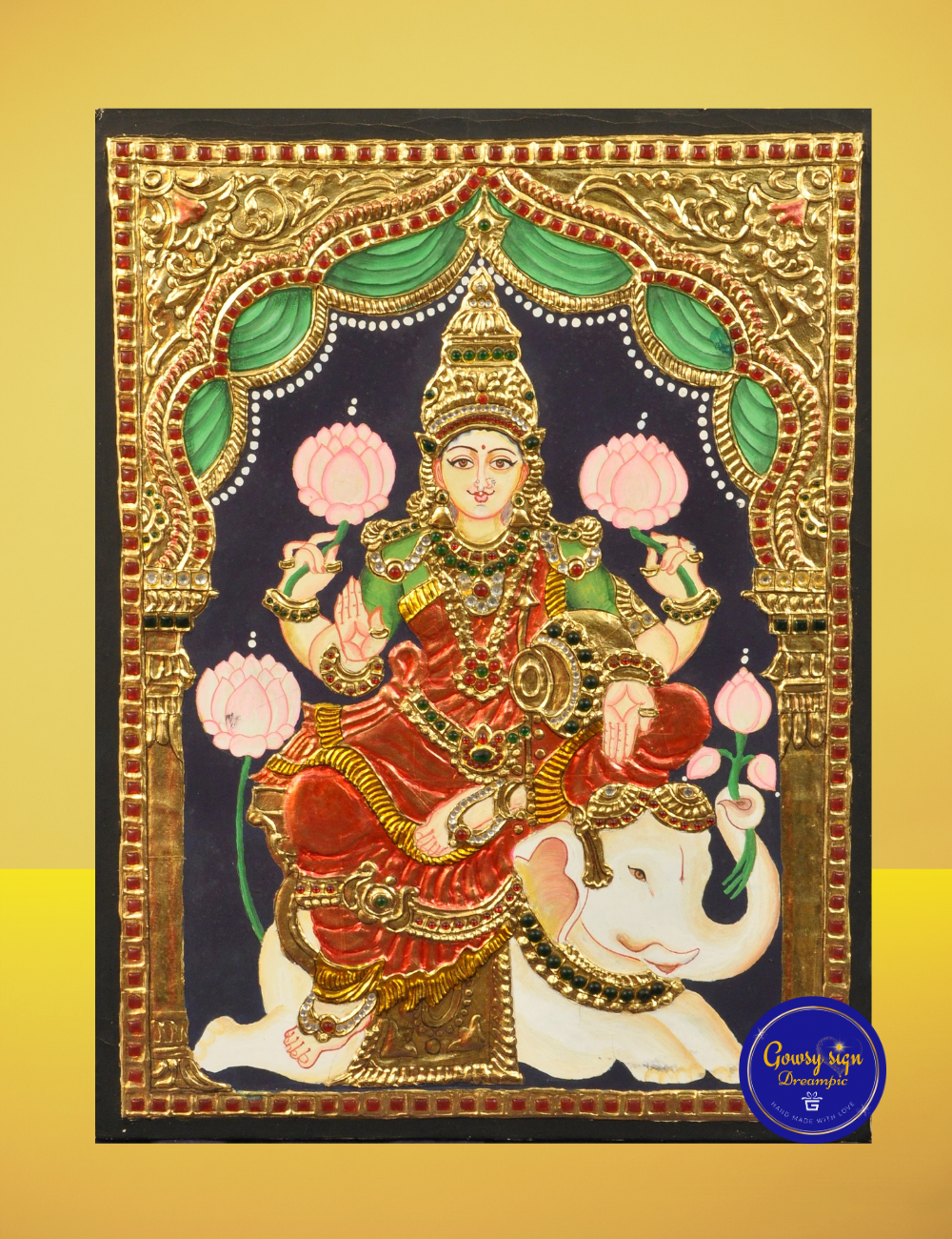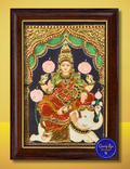 Crafted in the traditional Tanjore style, this painting features intricate embossed detailing and luminous 24k gold foil work, reflecting the goddess’s aura of dignity and devotion. A rare collectible that brings divine charm to your home or sacred space.