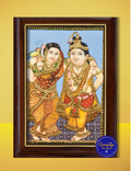 Handcrafted by skilled artisans in the traditional Tanjore style, this masterpiece is adorned with authentic 24k gold foil, rich natural pigments, and intricate embossed detailing on a wooden base. It’s not just a painting—it’s a timeless expression of love and divine grace.