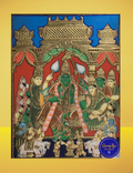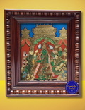 Crafted in the traditional Tanjore style, this artwork is enriched with 24k gold foil, vibrant colors, and embossed details that bring the divine court of Ayodhya to life.