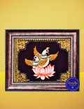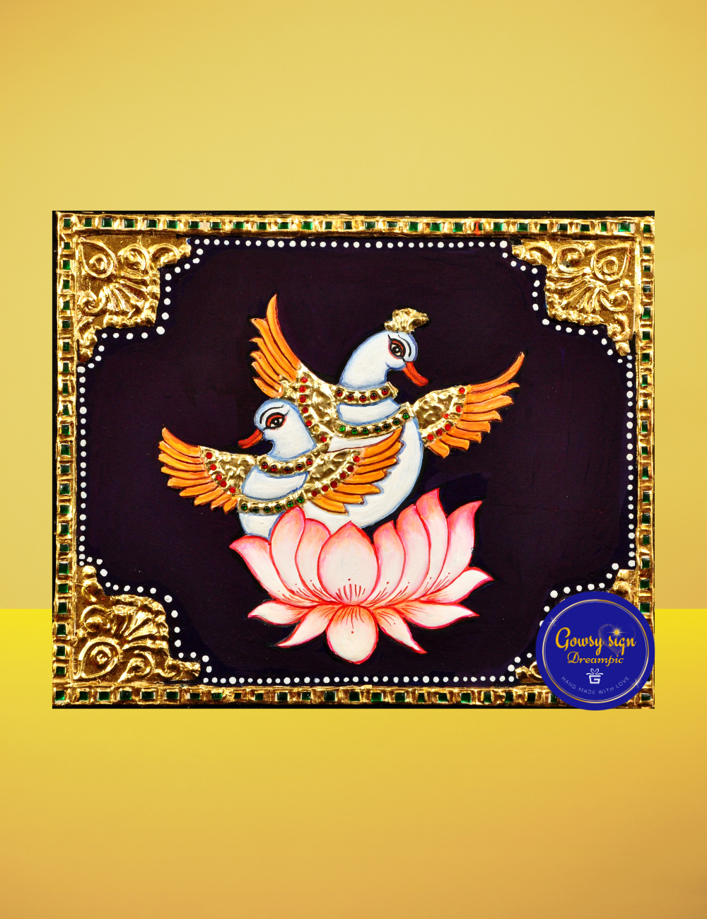 Embrace the beauty of love, unity, and peace with this elegant Tanjore painting of two white doves, crafted in the timeless South Indian art tradition. Known to symbolize purity, harmony, and devotion, white doves are often seen as messengers of peace and divine presence.